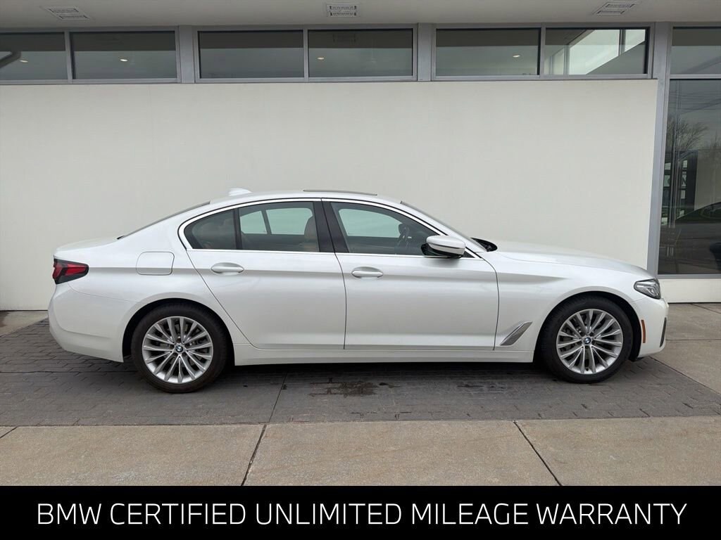 BMW CERTIFIED, ACCIDENT FREE AUTO CHECK, MOONROOF, AWD, SATELLITE RADIO, FACTORY REMOTE START, 100 % SERVICED AND UP TO DATE, BLUE TOOTH, USB PORTS, NAVIGATION, PUSH BUTTON START, ADVANCED KEYLESS ENTRY, HEATED SEATS, HEATED STEERING WHEEL, HEAD-UP DISPLAY, PREMIUM PACKAGE, ONE OWNER, BOUGHT HERE, SERVICED HERE, BMW CERTIFIED UNLIMITED MILEAGE WARRANTY, 12 Speakers, AM/FM radio: SiriusXM, Apple CarPlay & Android Auto Compatibility, Auto High-beam Headlights, Auto-dimming door mirrors, Auto-dimming Rear-View mirror, BMW Assist eCall, BMW TeleServices, Brake assist, ConnectedDrive Services, Delay-off headlights, Driver Lumbar Support Only (DISC), Electronic Stability Control, Emergency communication system: BMW Assist eCall, Enhanced USB/Bluetooth Plus Smartphone Integration, Exterior Parking Camera Rear, Fully automatic headlights, Garage door transmitter, harman/kardon Surround Sound System, Head-Up Display, Heated door mirrors, Heated Front Seats, Heated Steering Wheel, Illuminated entry, Live Cockpit Pro w/Navi, Lumbar Support, Memory seat, Navigation System, Outside temperature display, Panic alarm, Perforated Sensatec Upholstery, Power door mirrors, Power driver seat, Power Front Seats, Power moonroof, Power Tailgate, Premium Package, Rain sensing wipers, Remote Engine Start, Remote keyless entry, Speed control, Speed-Sensitive Wipers, Split folding rear seat, Sport steering wheel, Tachometer, Telescoping steering wheel, Tilt steering wheel, Trip computer, Turn signal indicator mirrors, Variably intermittent wipers. 2023 BMW 5 Series 530i xDrive Mineral White Metallic 8-Speed Automatic Sport