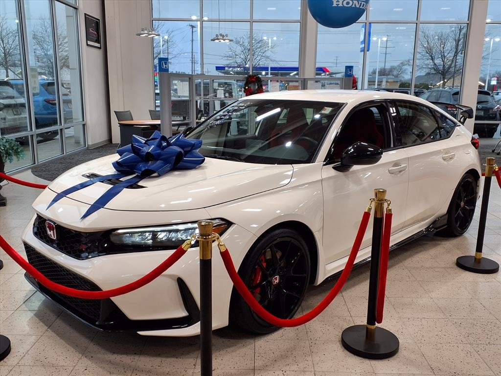 Championship White 2024 Honda Civic Type R FWD 6-Speed Manual 2.0L I4 Turbocharged DOHC 16V LEV3-ULEV50 315hp 4-Wheel Disc Brakes, ABS brakes, Adaptive suspension, Air Conditioning, Auto High-beam Headlights, Automatic temperature control, Blind Spot Information (BSI) System warning, Brake assist, Delay-off headlights, Dual front impact airbags, Dual front side impact airbags, Electronic Stability Control, Exterior Parking Camera Rear, Four wheel independent suspension, Fully automatic headlights, Navigation System, Panic alarm, Power steering, Power windows, Radio data system, Radio: Bose Premium Sound System w/SiriusXM, Remote keyless entry, Security system, Speed-sensing steering.